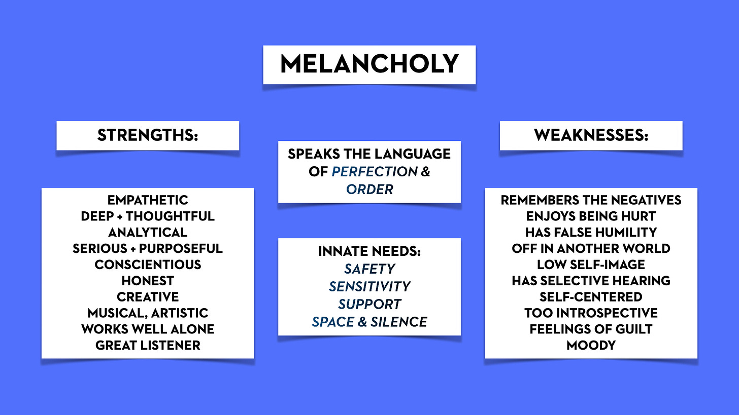Introvert types: Phlegmatic (green), Melancholy (blue)