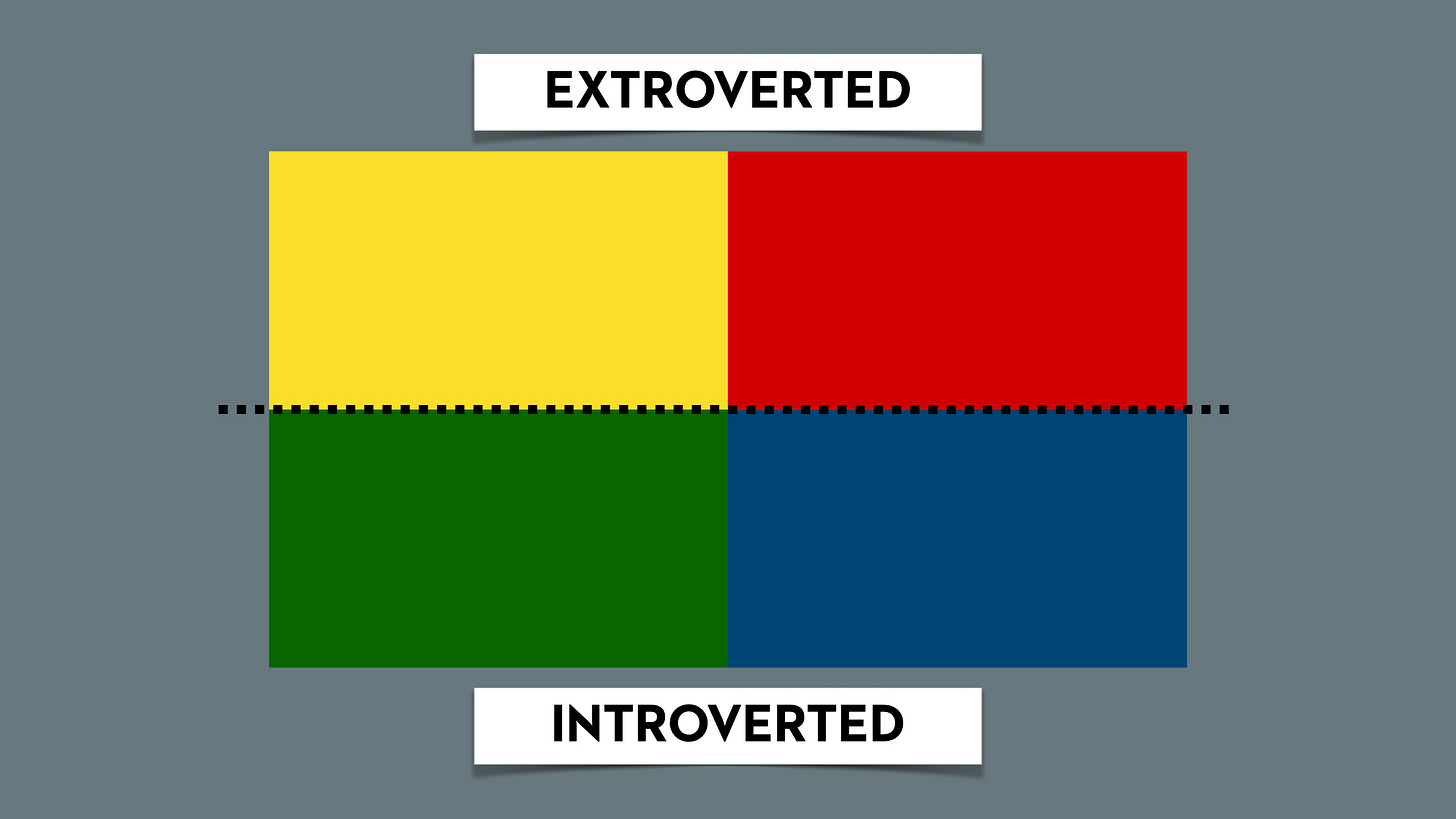 Extrovert types: Choleric (red), Sanguine (yellow),